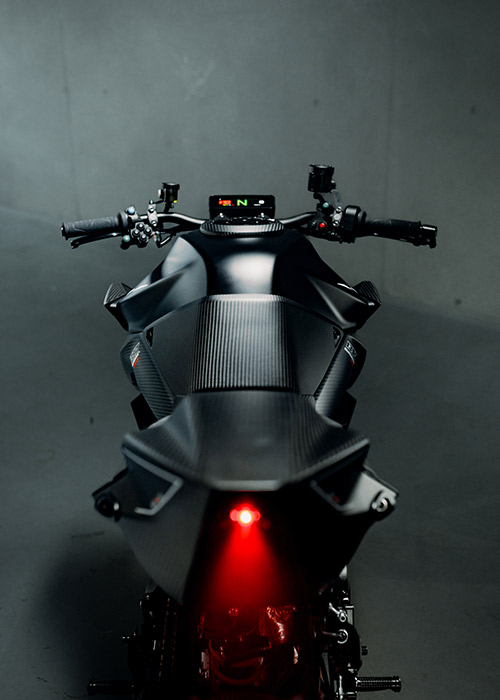 Se il nome non fosse abbastanza chiaro, la KTM 1390 SUPER DUKE RR TRACK è una Hypernaked pronta per la pista e non omologata per l’uso stradale, realizzata in soli 100 esemplari. Più leggera di oltre 20 kg rispetto alla KTM 1390 SUPER DUKE R stradale, combina agilità e stabilità mai viste prima. Costruita e rifinita da mani esperte a Mattighofen, in Austria, è dotata di uno splendido body kit in carbonio, sospensioni WP PRO COMPONENTS con tecnologia derivata dalla MotoGP, impianto frenante BREMBO Superbike, cerchi forgiati in magnesio e pneumatici slick, il tutto per offrire una moto da pista senza compromessi, che infrange le regole e i limiti.